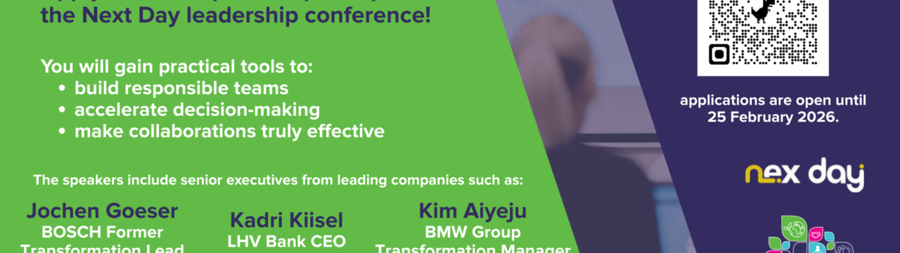 We invite you to apply for a free place to participate in the Next Day leadership conference, taking place on 12 March in Tallinn at T1 Venue. The conference will feature top executives from global companies such as Bosch, BMW Group, and others, alongside influential Estonian leaders. They will share practical tools for building responsible teams, accelerating decision-making, and making collaboration truly effective.
